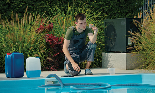 A healthy pool season is all about the right mix of chemicals and pH levels. Before you get into testing mode, you’ll need to have a water testing kit on hand. Begin the process by testing the pH levels of the water and adjust as needed to keep the pH between 7.2-7.8. Keeping the pH levels in this range helps prevent skin irritation and eye discomfort.